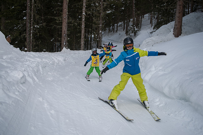 leren de kinderen het huidige carving skiën met veel plezier en spelletjes voor beginners en gevorderden.